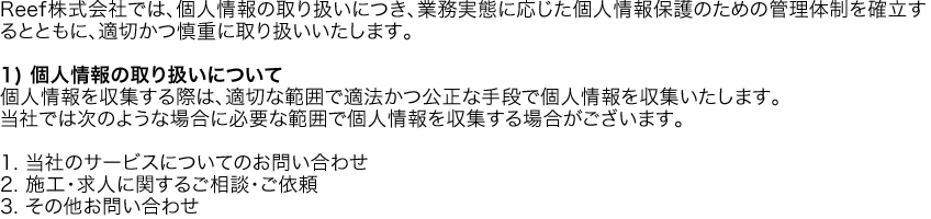 Reef株式会社へのお問い合わせは、下記のフォームから送信してください。後日担当者よりご連絡いたします。